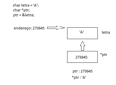 Na imagem acima, a variável ptr guarda o endereço de memória da variável nr. A variável ptr é um ponteiro para a variável nr. Através do ponteiro ptr podemos aceder e alterar o conteúdo da variável nr.